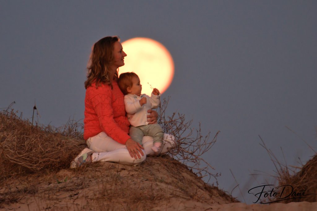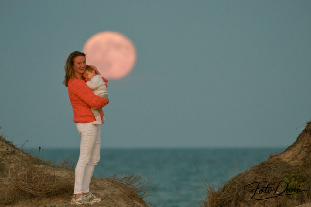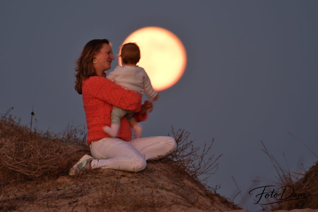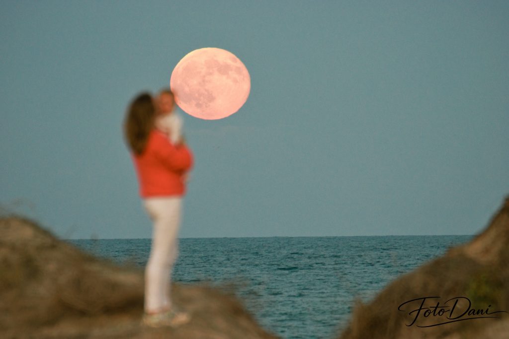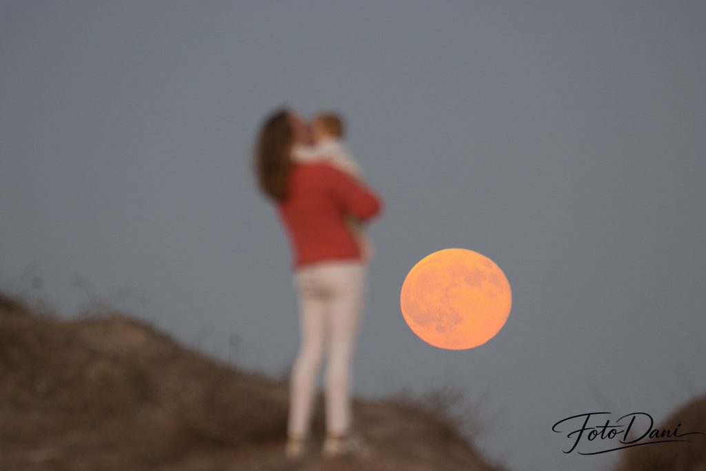 Para conseguir las mejores y más originales fotografías, utilizo un objetivo con gran capacidad de zoom. De este modo, la luna parece aún más grande en el encuadre. La luz tenue del atardecer crea una atmósfera más suave y, cuando estos elementos se combinan, dan lugar a una fotografía preciosa y especial.